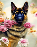 Алмазная вышивка «Красивая овчарка среди цветов» 30x40 см