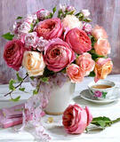 Алмазная вышивка «Полные бутоны роз и чай» 40x50 см