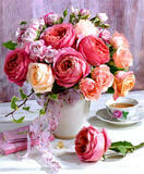 Алмазная вышивка «Розы в нежных тонах и чашечка чая» 40x50 см