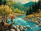 Алмазная вышивка «Рыбалка на горной реке» 40x50 см
