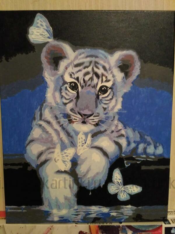 Картина по номерам «Тигренок и бабочки в ночи» размером 40x50 см см. купить по выгодной цене 639 ₽ с доставкой по Москве и всей России.